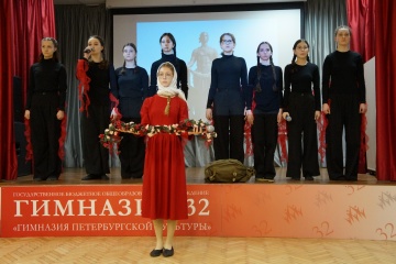 26 ноября 2021 года в гимназии № 32 «Гимназия петербургской культуры» прошло награждение участников акции «Творим добро и милосердие». Подробнее День Матери - особый праздник, к которому никто не может остаться равнодушным, ведь для каждого человека Мама – самый главный человек. В этот день мы говорим слова благодарности всем Мамам, дарящим любовь, добро, заботу и нежность своим детям. Подробнее Поздравляем учащуюся 10 класса нашей гимназии Марию Семёнову с первым местом (старшая группа) в XI международном конкурсе российско-китайской песни «Кубок Конфуций»!
