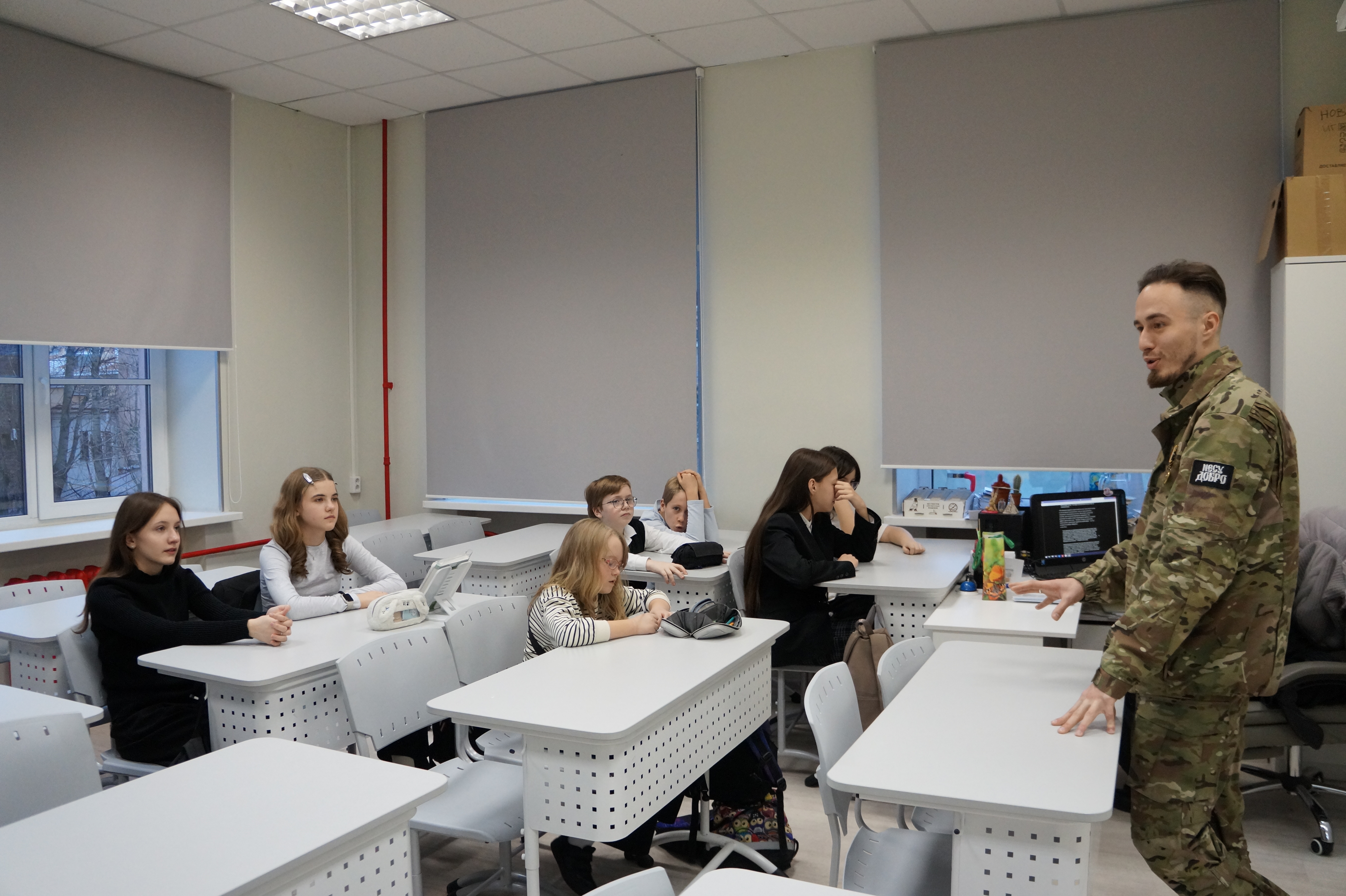 1 декабря в 6 "А" классе нашей гимназии прошел Урок мужества, который провел Дмитрий Викторович Рябухин — участник СВО, инструктор по высокоточной стрельбе и командир взвода снайперов.
