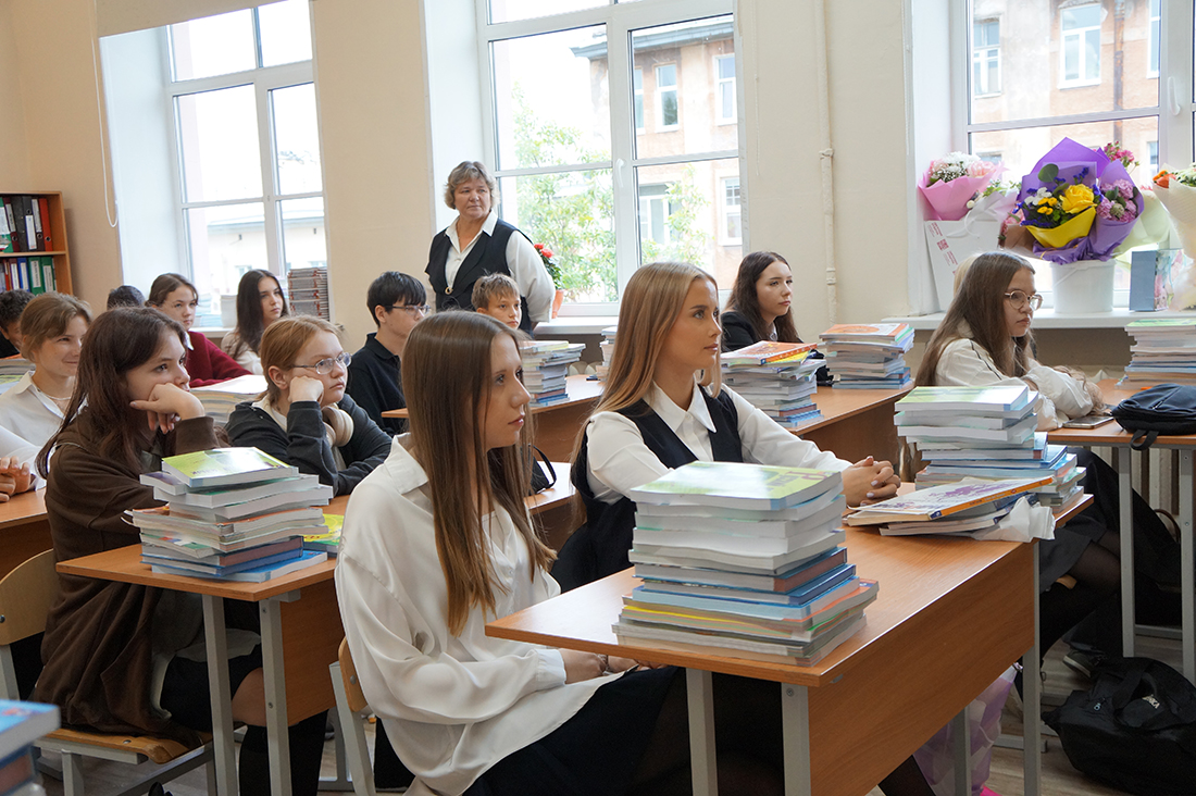В гости к учащимся 7 «В» класса пришел председатель Совета ветеранов Василеостровского района, депутат Муниципального совета МО Васильевский Олег Вячеславович Москвин. Он рассказал ребятам о «Дороге жизни», единственном пути, связывавшим Ленинград со страной. Учащиеся узнали, что у Дороги жизни было много составляющих: "авиамост" с Большой землей, Ладожская военная флотилия, защищавшая ладожские коммуникации, речное пароходство, телефонно-телеграфный кабель, обеспечивший связь с Москвой, электрический кабель, который позволил поставлять в Ленинград электроэнергию с Волховской ГЭС, а также трубопровод, который также проходил по дну Ладоги, снабжая город топливом.