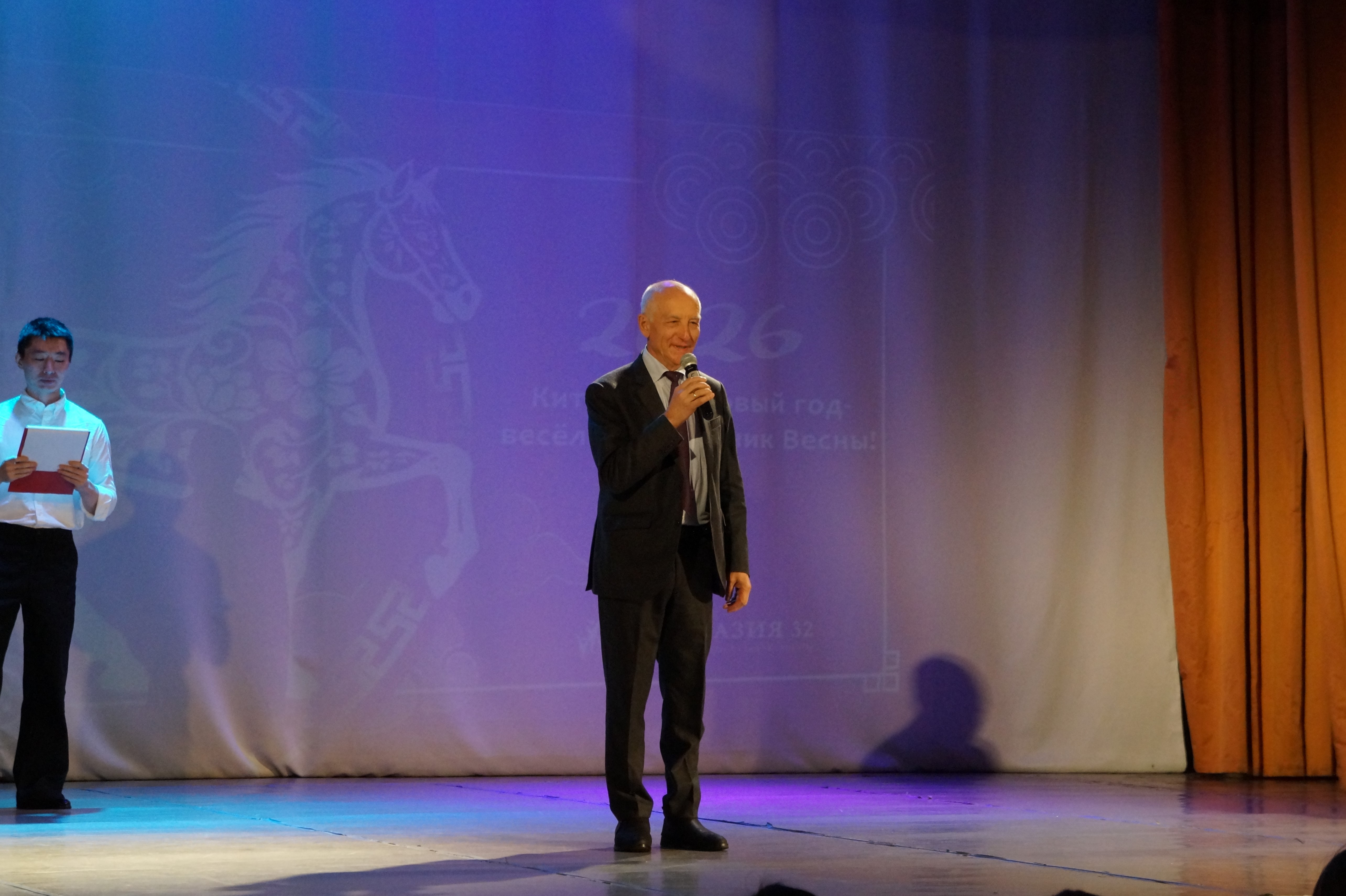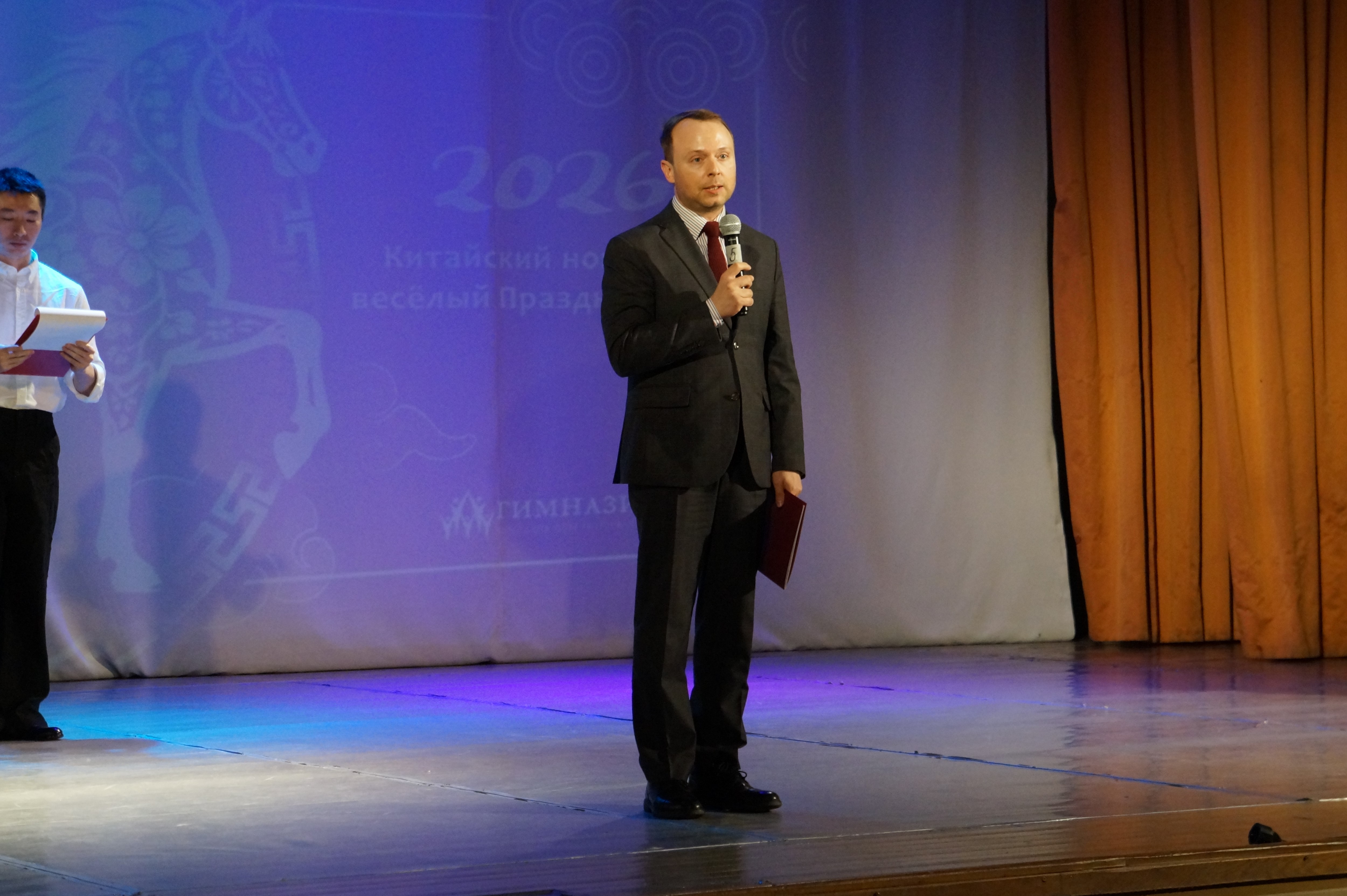 Александр Владимирович Небренчин, начальник отдела развития образования Комитета по образованию Санкт-Петербурга, поприветствовал собравшихся и поздравил их от имени председателя комитета Натальи Геннадьевны Путиловской. Он отметил, что 2026 год объявлен перекрестным Годом образования России и Китая, подразумевающим проведение множества образовательных мероприятий, направленных на изучение культур обеих стран.