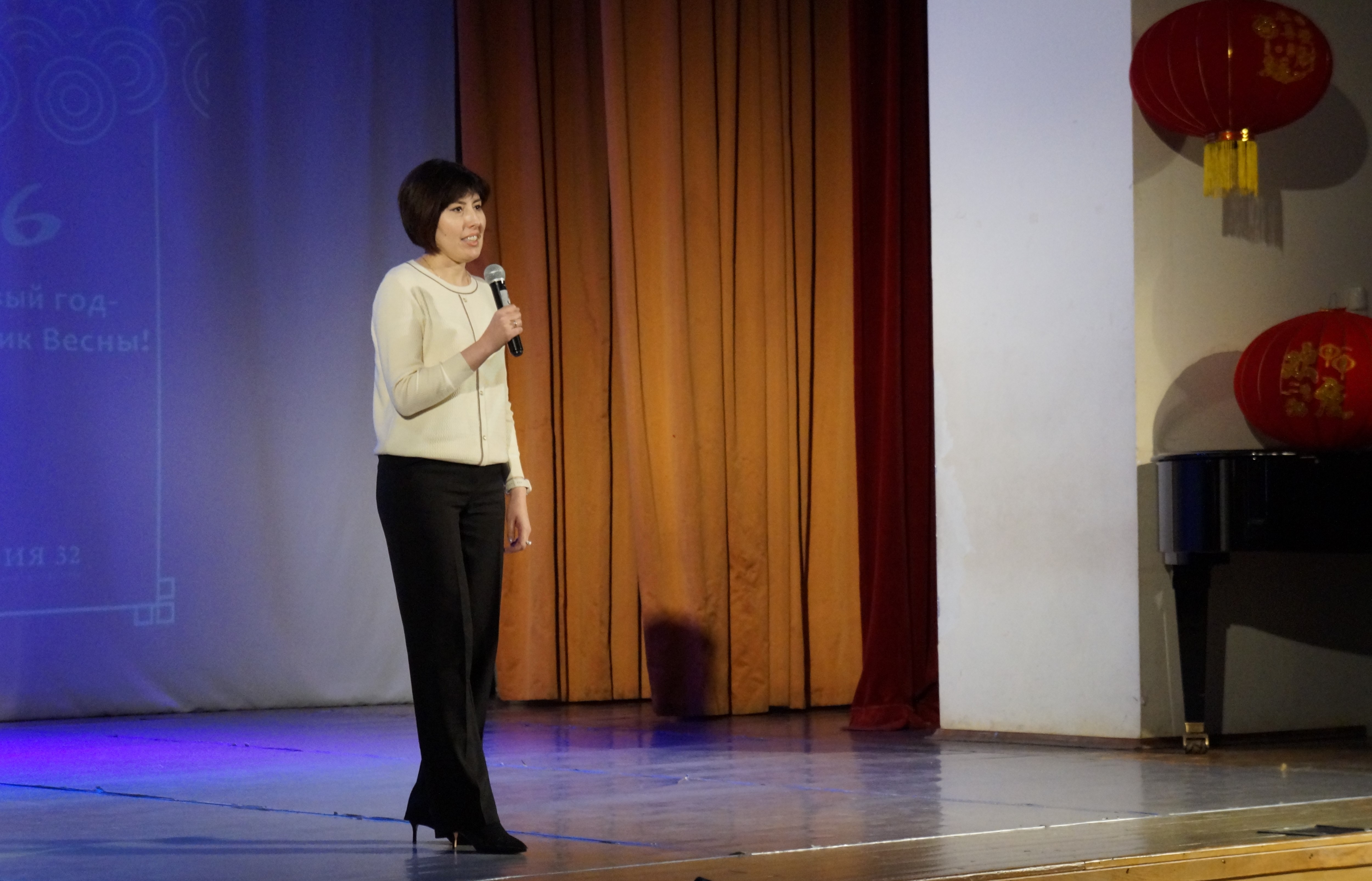 Ведущие праздника выступали на двух языках. В этом году честь вести программу была предоставлена ученице 9 «А» класса Маргарите Герасимовой и учителю китайского языка Ма Жуйхаю.
