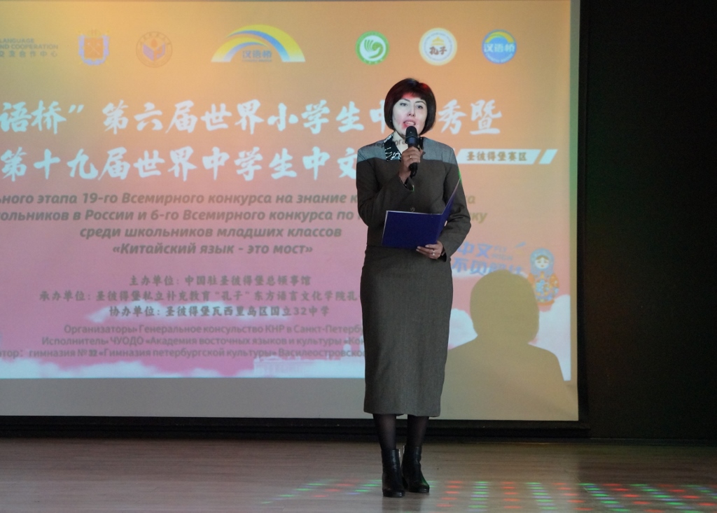 С речью также выступила главный специалист отдела образования администрации Василеостровского района – Исмаилова Ленора Асановна. Она поблагодарила участников, организаторов, руководителей и кураторов конкурса и отметила, что конкурс является знаковым событием в области развития китайско-российских отношений.