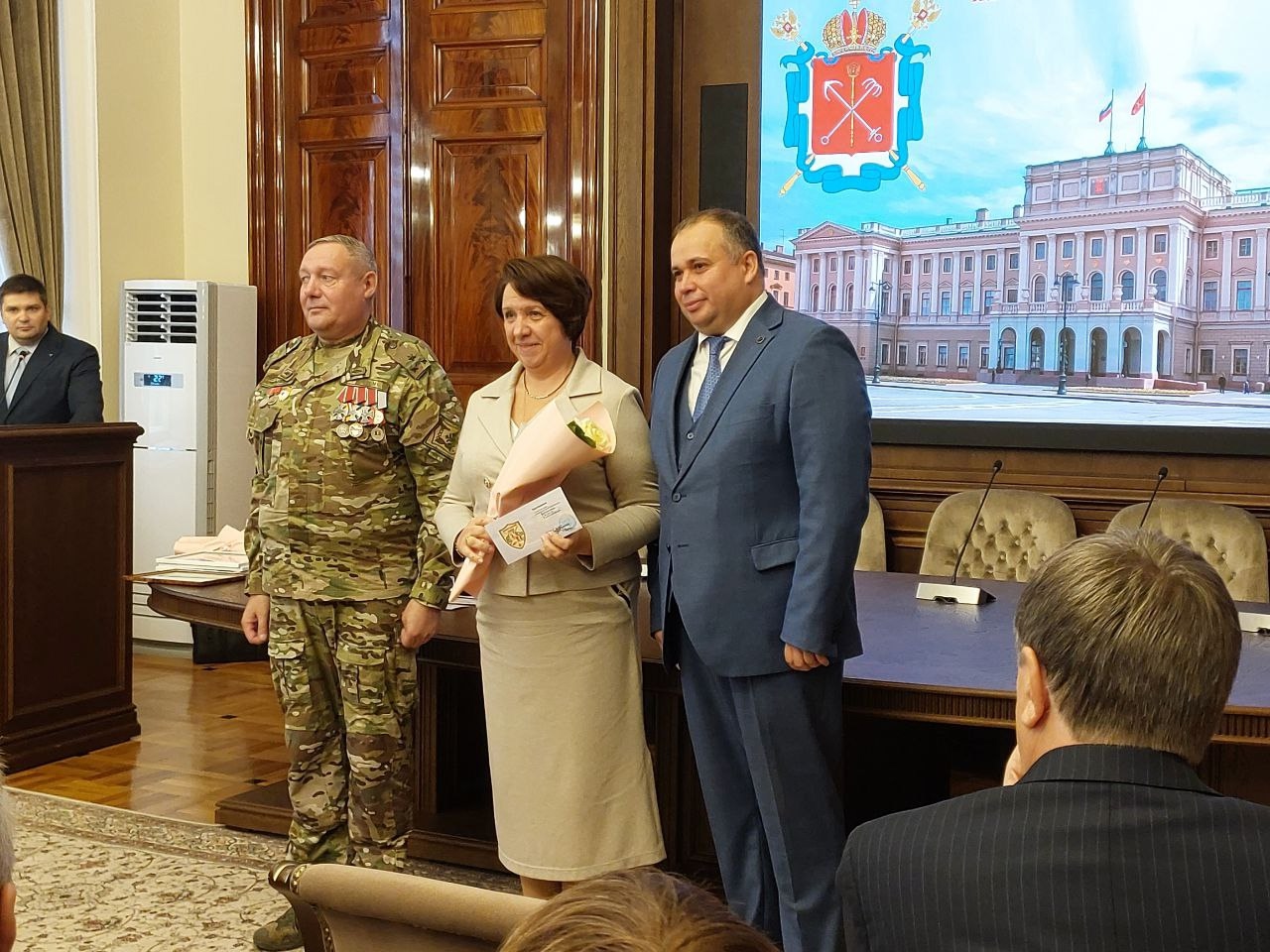 В Мариинском дворце состоялась торжественная церемония вручения памятных знаков «Гвардейский Ленинградский полк». Эти знаки были вручены петербуржцам, которые оказывают активную всестороннюю помощь участникам специальной военной операции. Среди награжденных была директор гимназии №32, депутат Муниципального совета МО "Васильевский" Оксана Викторовна Коршунова. Она поделилась своими впечатлениями: "Мне посчастливилось быть среди награжденных! С большим волнением и гордостью я приняла эту почетную награду из рук командира полка, полковника Михаила Когана! Спасибо за огромную честь!"