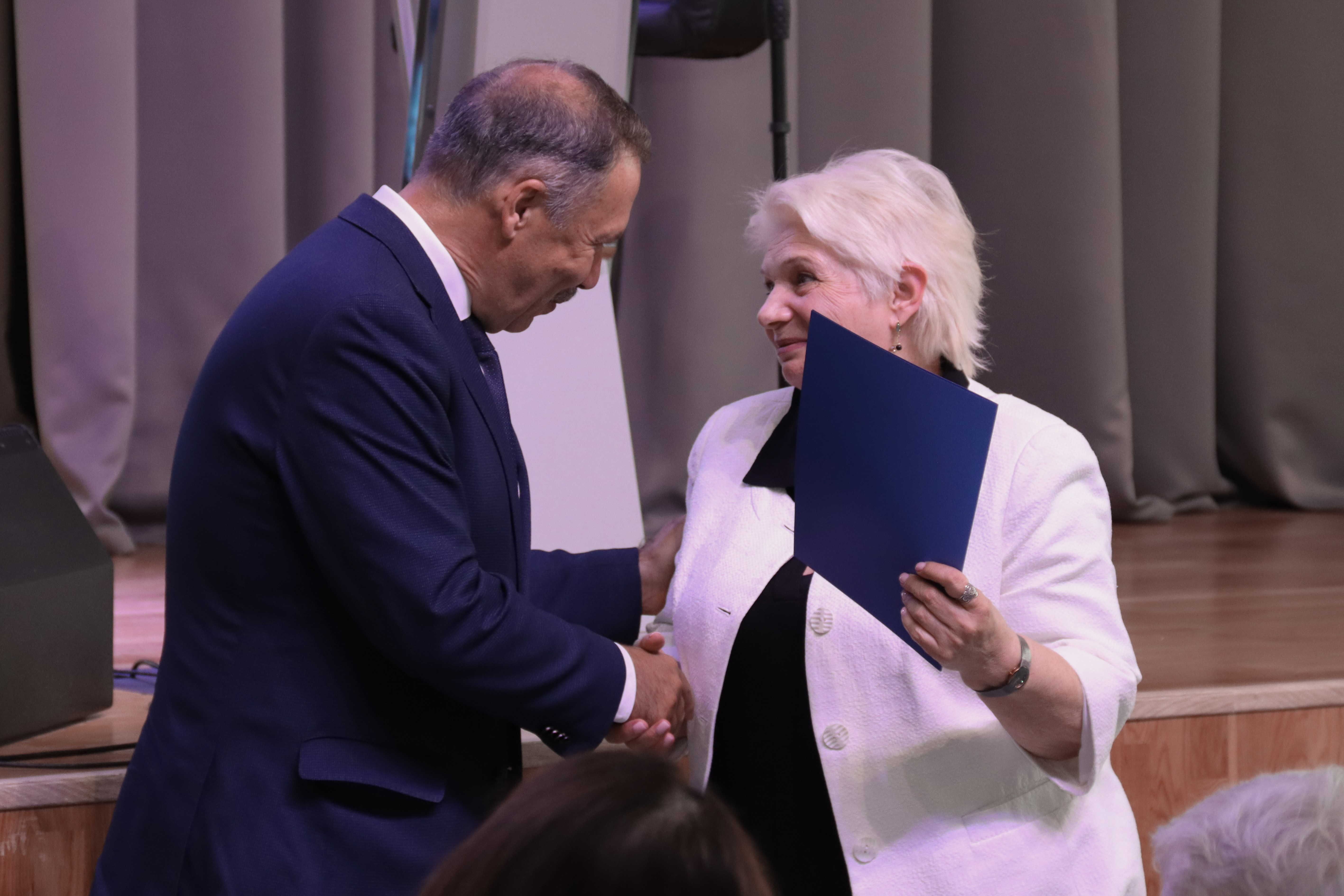Заключительным аккордом мероприятия стало торжественное награждение лучших представителей педагогического сообщества за выдающиеся достижения и значимый вклад в развития образования района. Среди награжденных были педагоги нашей гимназии: воспитатель группы продлённого дня Ирина Владимировна Норина и учитель русского языка и литературы Наталия Николаевна Поленок. Они получил Почётные грамоты и Благодарственные письма от администрации Василеостровского района.
