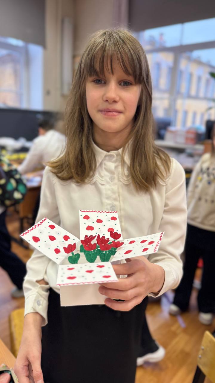Лили Райнш, ученица 11б класса, участвовала в международном конкурсе видеороликов «Китайский новый год в моих глазах» и заняла третье место среди 198 участников из 52 стран. Поздравляем! В преддверии 8 марта учащиеся 4 "В" класса, сделали поздравительные открытки и подготовили подарки для пожилых петербуржцев, проживающих в Доме ветеранов. Участвовать в акции "Старость а радость" для наших ребят стало доброй традицией. Ежегодно они вместе с родителями собирают очень необходимые для одиноких бабушек и дедушек вещи, пишут трогательные поздравительные открытки. 6 марта 2021 года движению юных инспекторов движения исполнится 48 лет: в этот день в 1973 году в СССР было принято Положение об отрядах ЮИД.
