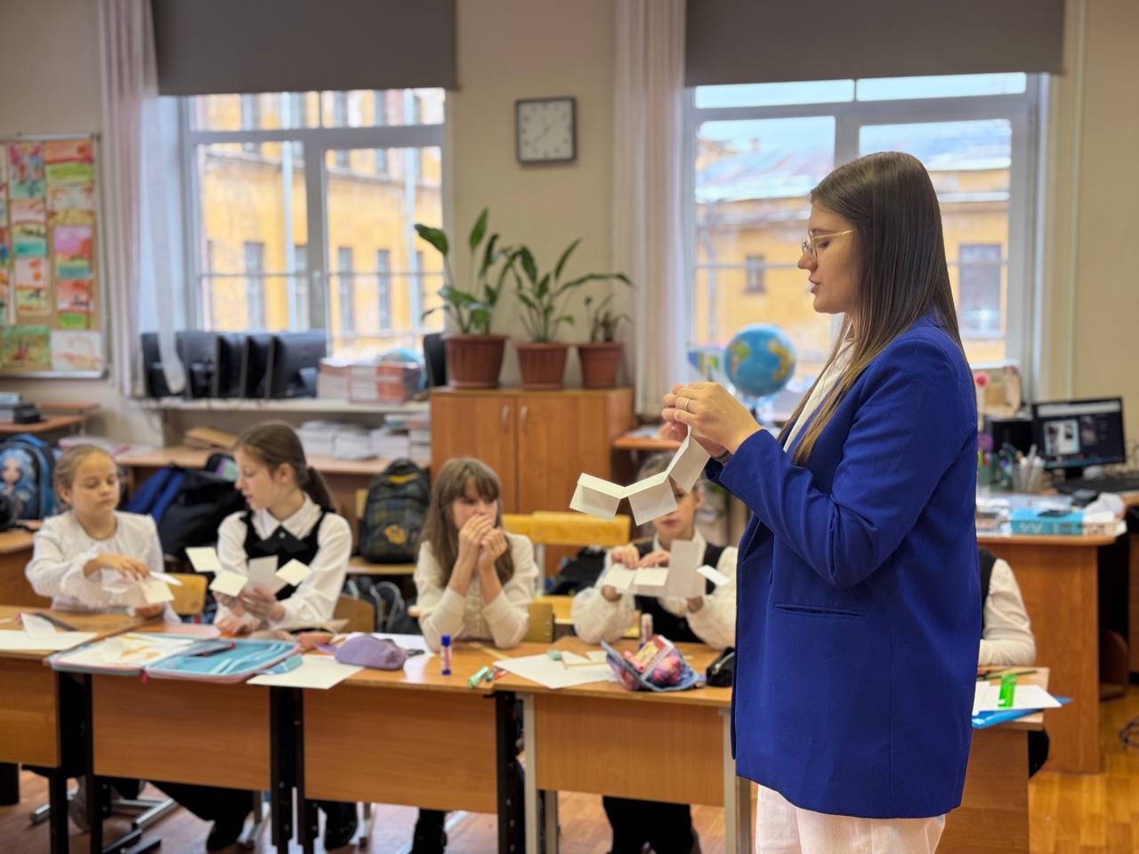 24 октября 2025 года во 2 "Б" классе прошел увлекательный мастер-класс по изготовлению светоотражателей! Занятие провела Наталья Викторовна Некрытова, старший инспектор по пропаганде безопасности дорожного движения Госавтоинспекции Василеостровского района. Она рассказала детям о правилах безопасности на дороге и важности использования светоотражающих элементов. После теоретической части ребята с помощью членов отряда ЮИД нашей гимназии создали оригинальные светоотражатели в виде мордочек котов. Ученики младших классов смогут прикрепить свои светоотражатели на рюкзаки или одежду, что сделает их маршрут в школу безопаснее.