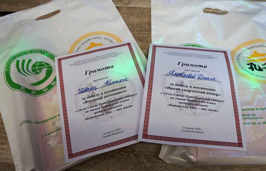 14 апреля 2026 года состоялся VI конкурс на знание китайского языка для школьников младших классов «Китайский язык - это мост» (Санкт-Петербургский этап) и XIX конкурс на знание китайского языка среди школьников Санкт-Петербурга «Китайский язык – это мост».